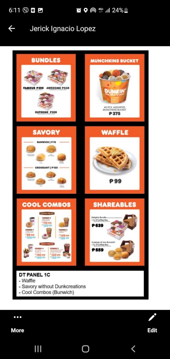 The donut selection embodies simplicity and quality. From bundles like the Famous 8 Bundle mixing Supreme, Classic, and Premium donuts, to assorted Classic Donut packs available in 12 or 24 pieces, it’s clear that DUNKIN’ prioritizes affordability without sacrificing taste. The flavors, though not overwhelming in variety, focus on delivering consistent satisfaction, making it a local favorite.